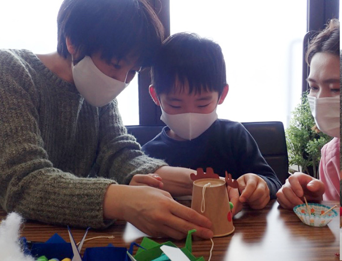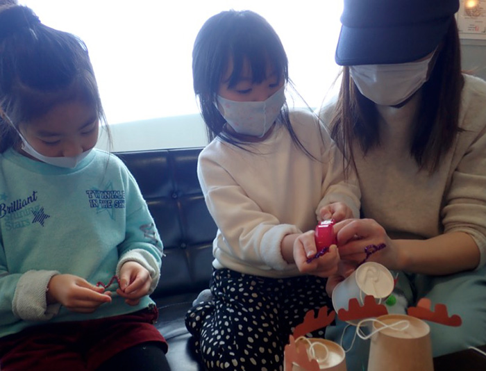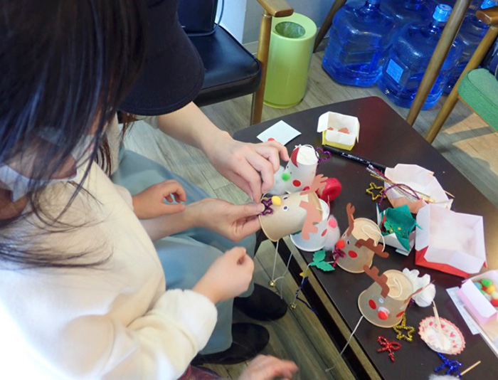 事前にご予約いただいていた8組の親子とクリスマスのオーナメントを作りました。