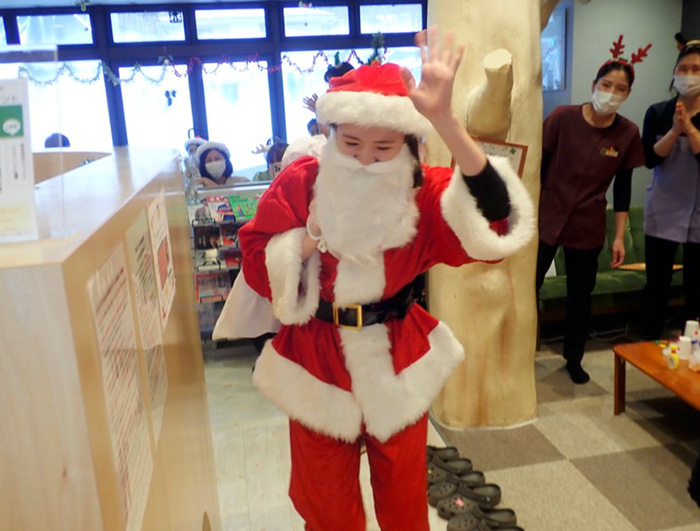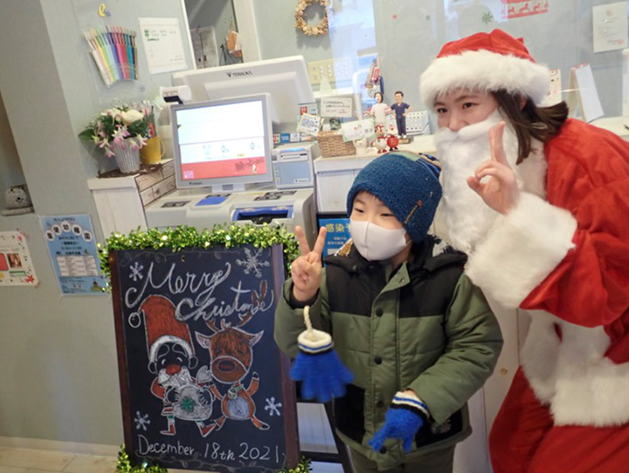 当日はサンタクロースも登場し、プレゼントをもらったり、記念写真を撮って楽しみました。