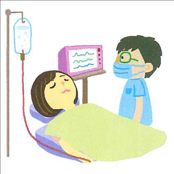 静脈内鎮静法は、点滴からリラックスできるお薬を使い、少しボーとした状態で手術を行いますので、痛みが少なく手術時間も短く感じられます。