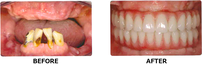 歯がほとんどない、そんな時に、オールオンフォーはインプラントで固定式の歯を作るため、有効です。また見た目もキレイになります。