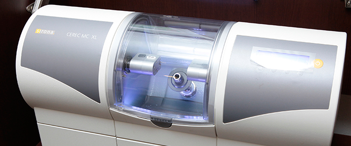 最先端のカメラを使用して患部を立体的にスキャンし、コンピュータ上に再現された立体データを元に詰め物・被せ物を削り出します。そのため、非常に精度が高く、また、規格生産された高品質なセラミックブロックから削り出すため、耐久性が高く、治療時間も短く非常にスピーディーに終わることが出来るようです。